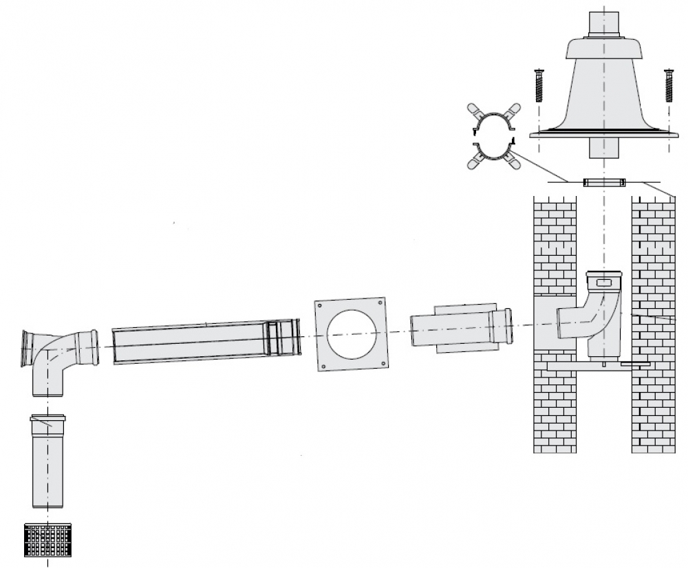 ·         Входная труба без муфты, длина 500 мм, O 110 мм.